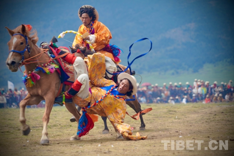 此外,來(lái)自奔戈鄉(xiāng)、禾尼鄉(xiāng)、曲登鄉(xiāng)和村戈鄉(xiāng)的馬隊(duì)還進(jìn)行了傳統(tǒng)馬術(shù)表演,馬背倒立、馬肚藏身、俯身拾哈達(dá)等精湛技藝,讓觀(guān)眾大飽眼福,充分感受到了理塘賽馬文化的魅力。