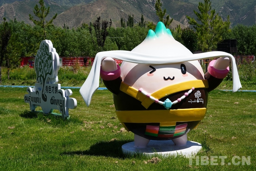 才納園區(qū)的吉祥物叫“芽芽”,其形象是一顆身著藏裝、手捧哈達(dá)的胚芽。“才納”曾名為“菜納”,藏語意為“菜源”。相傳1300年前文成公主進(jìn)藏時(shí),看中了才納的氣候條件,將從大唐帶來的糧食、花種和藥材播種于此地。由于當(dāng)時(shí)西藏環(huán)境惡劣,只有才納種植成功,因此而得名。