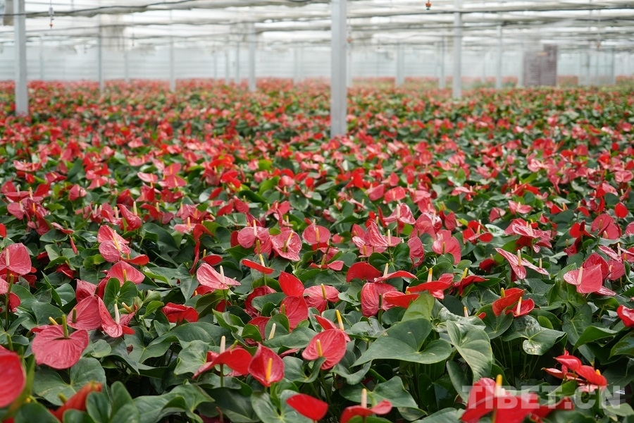 文成公主種下民族團(tuán)結(jié)的種子,在今天依舊開出鮮艷的花。才納園區(qū)總投資6億元,其中江蘇援藏資金1.5億元。紅掌花卉基地就是江蘇省泰州市產(chǎn)業(yè)援藏的一個(gè)典范,基地由泰州國有企業(yè)蘇中園藝公司和才納園區(qū)合作建設(shè),總面積16畝,溫室規(guī)模1萬余平方米,年可生產(chǎn)鮮花10萬盆。