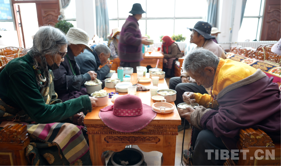 圖為老人們在改則縣老年人日間照料中心用餐