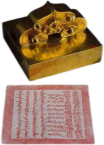 展覽中,37道敕封圣旨與13枚官印沿玻璃展柜鋪展,時(shí)間跨度從元泰定至清光緒,封號(hào)涵蓋“白蘭王”“萬(wàn)戶”“都指揮僉事”“國(guó)師”“大國(guó)師”“大寶法王”“闡教王”“闡化王”“輔教王”“贊善王”“班禪額爾德尼”等。在布展中,工作人員首創(chuàng)“混搭串聯(lián)”的展覽敘事,通過在不同朝代的皇宮家具上放置對(duì)應(yīng)朝代的皇帝治藏的圣旨與印章,闡明元明清時(shí)期中央政府對(duì)西藏實(shí)施的有效行政管轄。