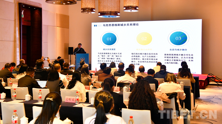 “西藏和平解放以后,特別是民主改革以來,我們用短短幾十年跨越上千年來形容整體的社會的變化,自治區(qū)成立以來我們西藏又實現(xiàn)了一個全方位的發(fā)展,在發(fā)展過程中,城鄉(xiāng)關系也實現(xiàn)了從量變到質變的一個過程?!蔽鞑刈灾螀^(qū)社會科學院農(nóng)村經(jīng)濟研究所副所長、研究員徐伍達圍繞《西藏推進高原城鄉(xiāng)融合發(fā)展研究》做了主旨發(fā)言,他認為第五屆青藏高原發(fā)展論壇在西藏的舉辦,為區(qū)內外學者提供了一個交流互動的平臺,不僅是西藏社科院開門辦院、合作辦院的體現(xiàn),也讓廣大哲學、社會科學工作者合力為做好新西藏長治久安和高質量發(fā)展做出一些基本貢獻。
