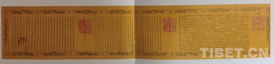 這是1757年乾隆皇帝命六世第穆呼圖克圖阿旺降白德勒嘉措出任西藏地方第一任攝政的敕諭。它以藏文、滿文、蒙古文3種文字書(shū)寫(xiě),承載著重要的歷史信息。