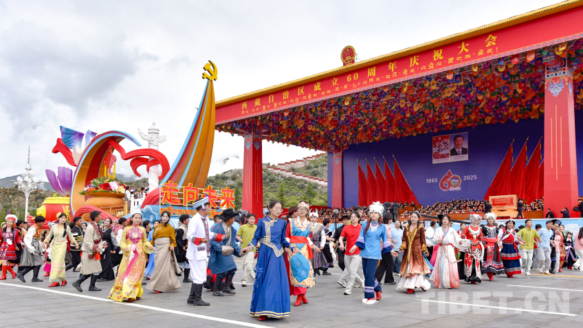 中國西藏網(wǎng)訊 8月21日上午,西藏自治區(qū)成立60周年慶祝大會在拉薩隆重舉行。慶祝大會舉行充滿吉祥喜慶氣氛的盛大群眾游行。游行分為“旗幟引領(lǐng)”“四件大事”“奮進新時代”“走向未來”4個單元,26個群眾游行方隊、彩車,在歡快的音樂中依次行進。各族群眾身著絢麗多彩的服飾,跳起熱情歡快的舞蹈,表達過上幸福生活的喜悅之情、對黨和國家的感恩之情。(中國西藏網(wǎng) 記者/王淑 趙振宇 德吉卓瑪 次旦拉姆 旦曲 賈華加 趙釗 姚浩然 劉莉 邊子捷 馮重霖 楊眉笑)