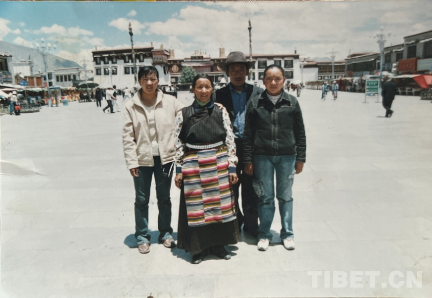 這是2005年我和丈夫、大女兒、小女兒在拉薩大昭寺前照的。那時是去給小女兒看病,當(dāng)時我五十歲。