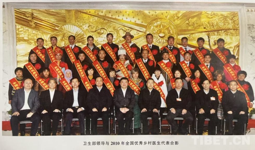 這是2010年去北京時照的。去北京參加全國優(yōu)秀鄉(xiāng)村醫(yī)生表彰會。本來那時雪大封路不好走,我說不去,但縣里堅持要我去。先是坐車到拉薩,然后坐飛機到重慶,再從重慶到北京。這次是我第一次坐飛機,起初有點害怕,但心想:“這么多人坐飛機都好好的,我肯定也沒事”。頒獎在衛(wèi)生部,領(lǐng)獎后去了天安門、故宮、鳥巢和水立方等地參觀,非常高興。