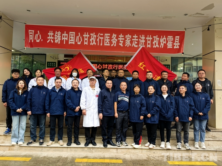 圖為義診團(tuán)隊在爐霍縣人民醫(yī)院合影