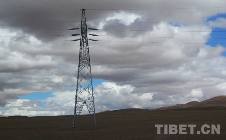圖為快到雙湖縣城時,可以看到高架電線、光伏板、基站等基礎設施 攝影:趙釗