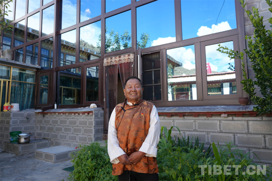走進西藏拉薩市曲水縣曲水鎮(zhèn)茶巴朗村黨委書記其加的院子,花草繁茂、干凈整潔,幾只雪白的小狗正歡快地?fù)u著尾巴跑來跑去。面前的兩層藏式小樓寬敞明亮,裝修精美,家電齊全,陽光棚上安裝著電動的拉簾。門側(cè)建有洗漱間,干濕分離,還有大大的浴缸。