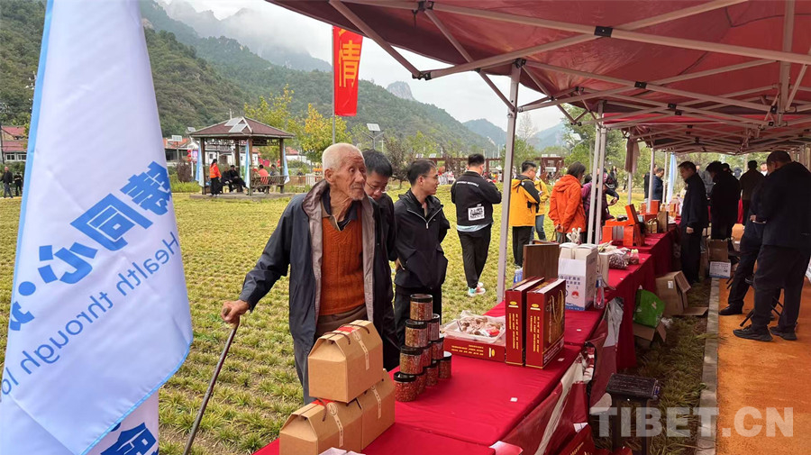 圖為游客了解展銷(xiāo)的當(dāng)?shù)靥厣a(chǎn)品 攝影:王帥