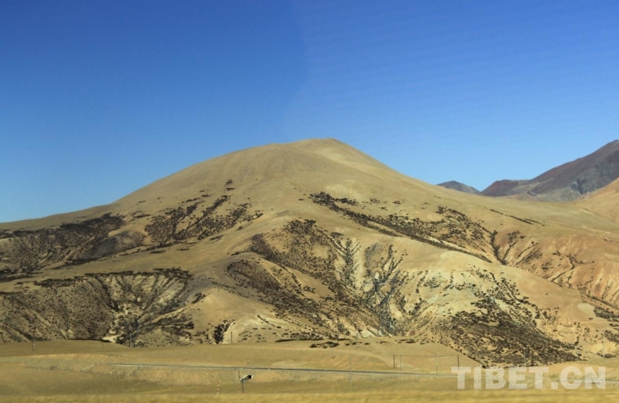 圖為阿里普蘭到札達沿途,有些山上覆蓋有低矮植被,仿若山長出“胡子” 攝影:趙釗