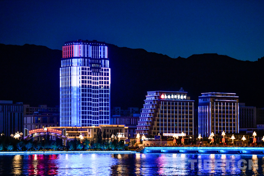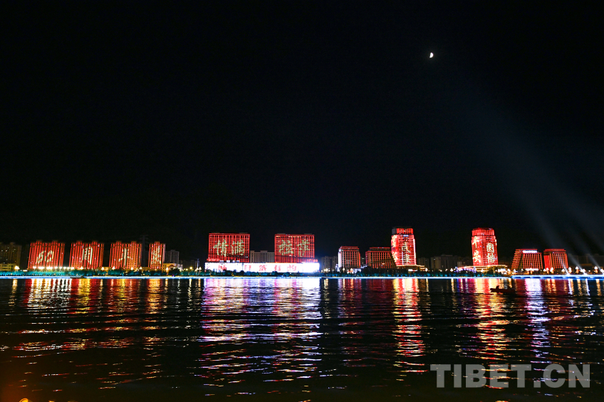 圖為國(guó)慶前夕拉薩河畔璀璨燈光 攝影:趙振宇