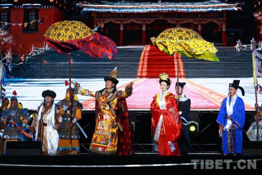 第二篇章“甲子禮贊”在與會領導共同啟動下推向高潮。由松贊藝術團與各鄉(xiāng)鎮(zhèn)演出隊聯(lián)袂創(chuàng)排的大型舞臺劇《墨竹長歌》震撼上演。該劇以四幕敘事,藝術再現(xiàn)了松贊干布的歷史功績、唐蕃和親的團結(jié)佳話、十八軍進藏往事以及新時代墨竹的幸福畫卷,生動詮釋了中華民族共同體意識在雪域高原的實踐。