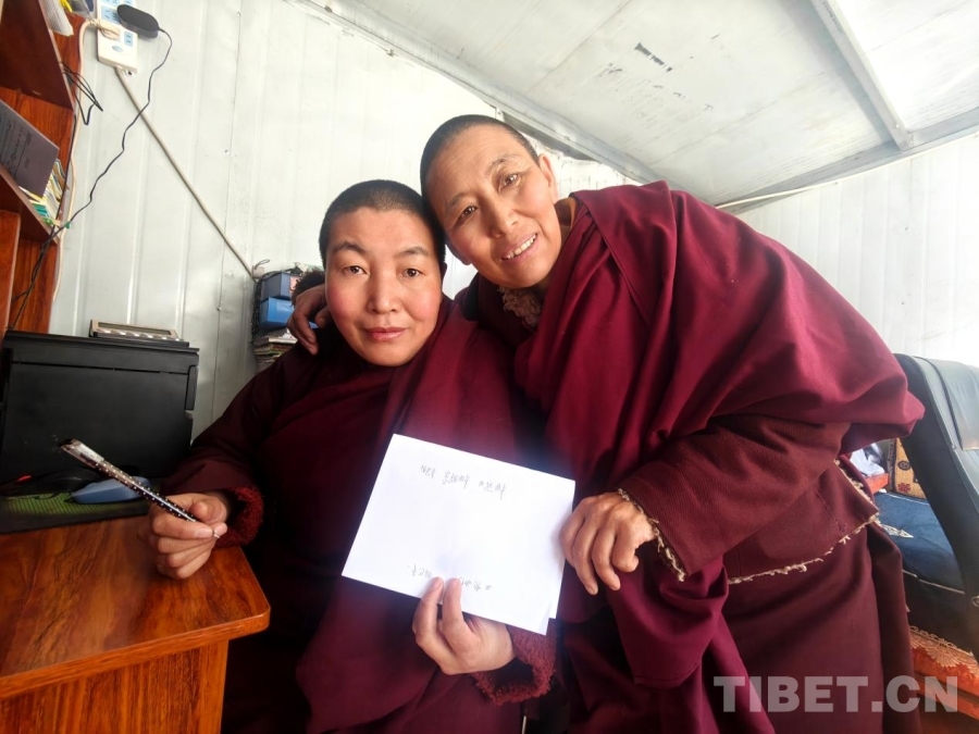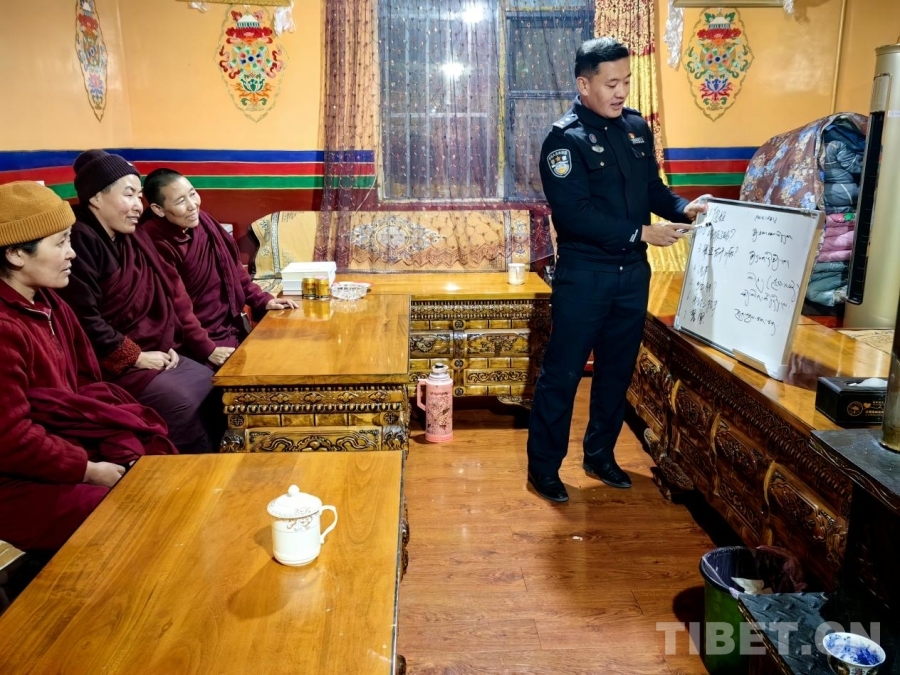 圖為民警更丁丁久為帕巴寺尼姑們開(kāi)展國(guó)家通用語(yǔ)言文字學(xué)習(xí)培訓(xùn)