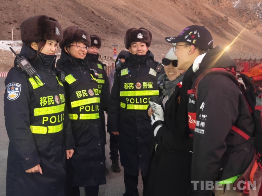圖為民警與游客在珠峰景區(qū)交談