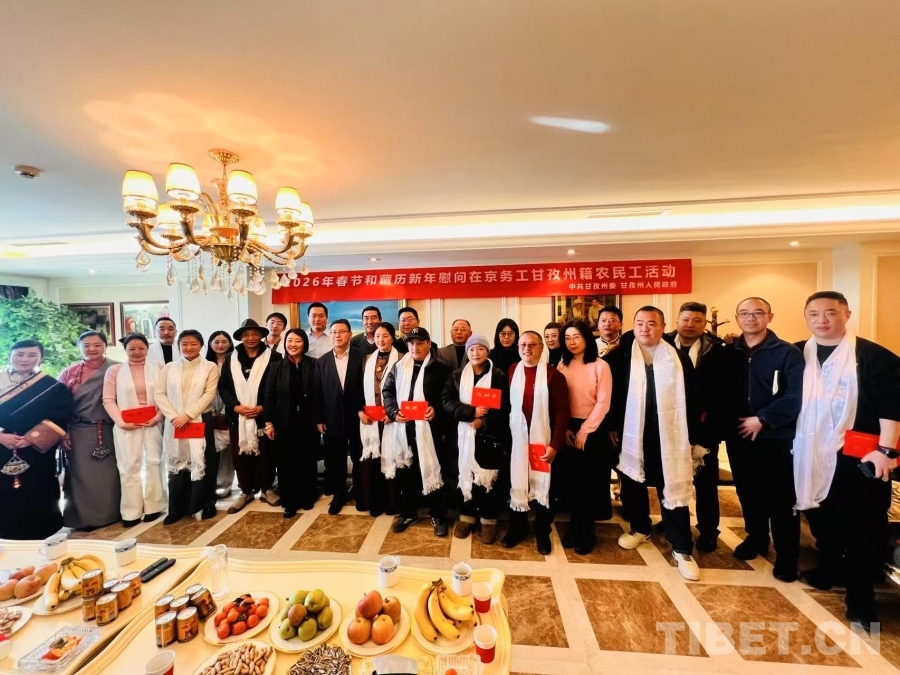 圖為2026年春節(jié)和藏歷新年慰問在京務(wù)工甘孜州籍農(nóng)民工活動(dòng)現(xiàn)場合影 攝影:龍真多吉
