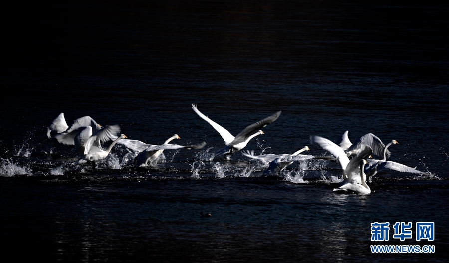 一群天鵝在千姿湖嬉戲。新華網(wǎng) 楊壽德 攝
