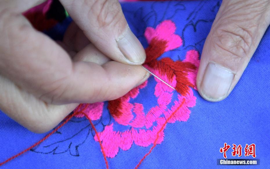 圖為1月13日,四川瀘定縣烹壩鎮(zhèn)繡娘巧手繡花。中新社記者 劉忠俊 攝
