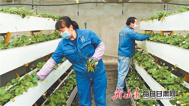 人勤春來早,春耕備耕忙。連日來隨著氣溫逐漸回升,甘肅省甘南藏族自治州舟曲縣白龍江兩岸的溫室大棚里,瓜果蔬菜長(zhǎng)勢(shì)喜人,鮮花開得正艷。種植戶搶抓農(nóng)時(shí),抓好溫室蔬菜生產(chǎn)管理,全力保障疫情防控期間本地市場(chǎng)蔬菜供應(yīng),豐富市民的“菜籃子”。舟曲綠脈農(nóng)業(yè)科技有限公司的科技示范蔬菜大棚里,員工正在忙著給草莓除草,檢測(cè)室內(nèi)溫度,灑水,提前做好病蟲害防治工作,粉里透紅的草莓掛滿枝頭,再過一周左右草莓就成熟上市。