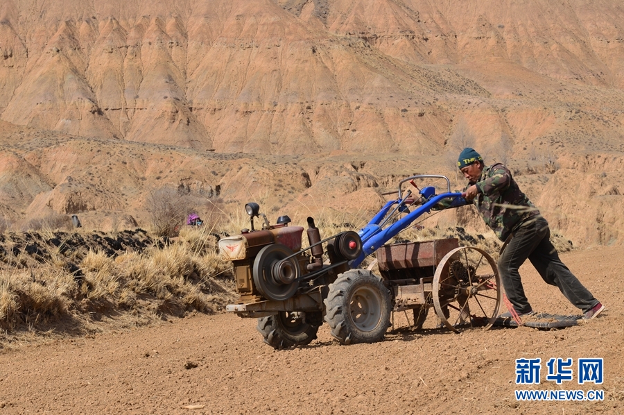 圖為青海省海南藏族自治州貴德縣尕讓鄉(xiāng)俄加村的村民正在耕地播種。新華網(wǎng) 李崇軒 攝