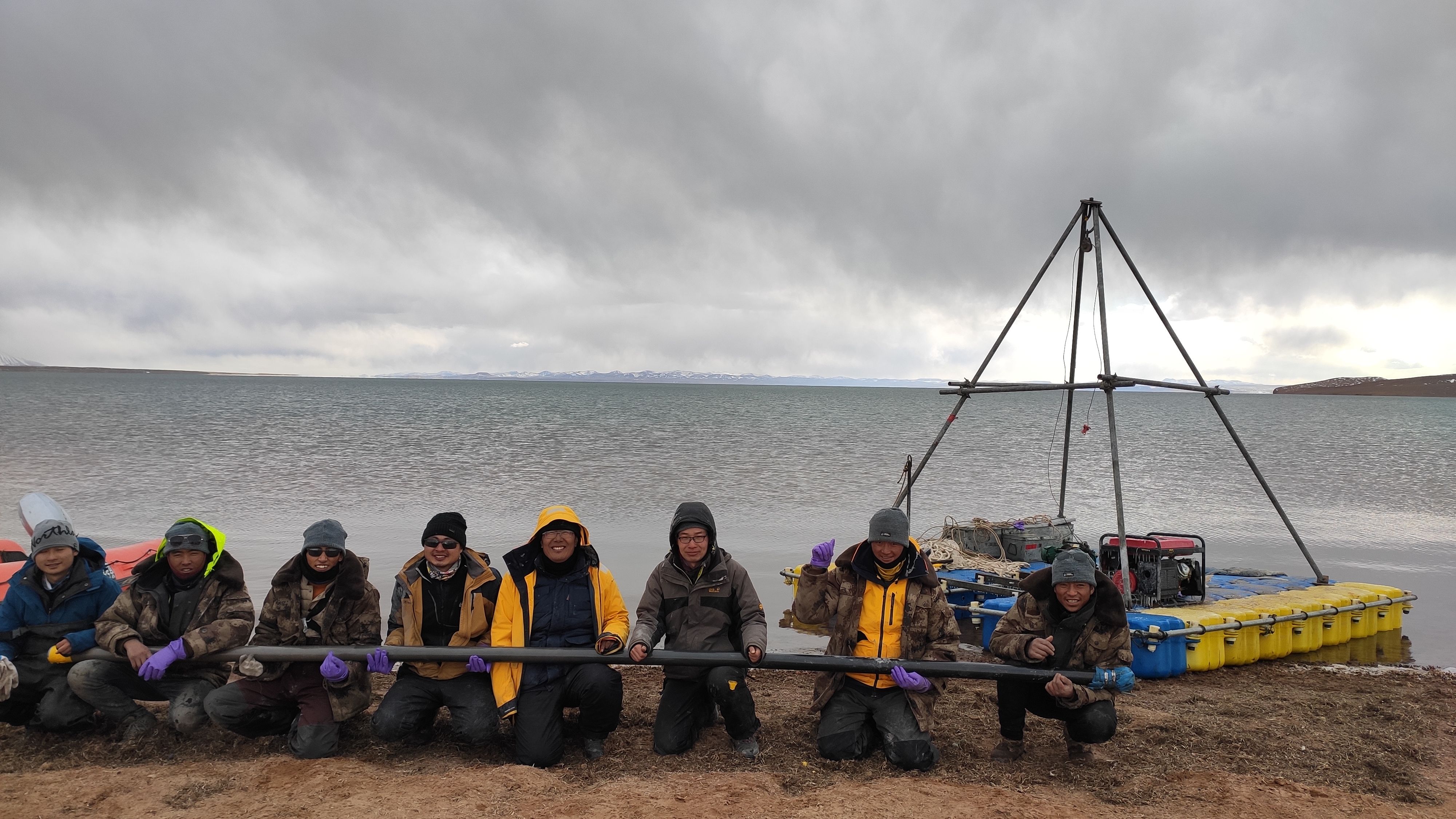 慢慢地,科考隊(duì)掌握了規(guī)律——湖面經(jīng)常下午四五點(diǎn)起風(fēng)。為躲避風(fēng)浪,隊(duì)員們冒著低溫早起工作,下午起風(fēng)的時(shí)候收隊(duì)。如果天氣好,趕上哪天下午沒(méi)怎么刮風(fēng),大家就一鼓作氣干到晚上十一二點(diǎn)再回營(yíng)。