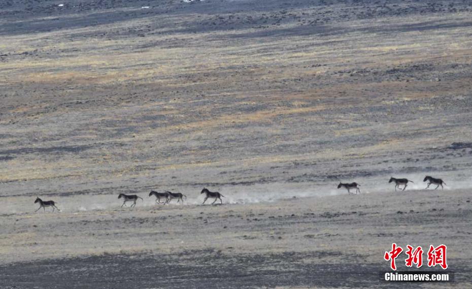 4月中旬,在甘肅肅南境內(nèi)祁連山草原上近距離拍攝到奔跑的藏野驢。 武雪峰 攝