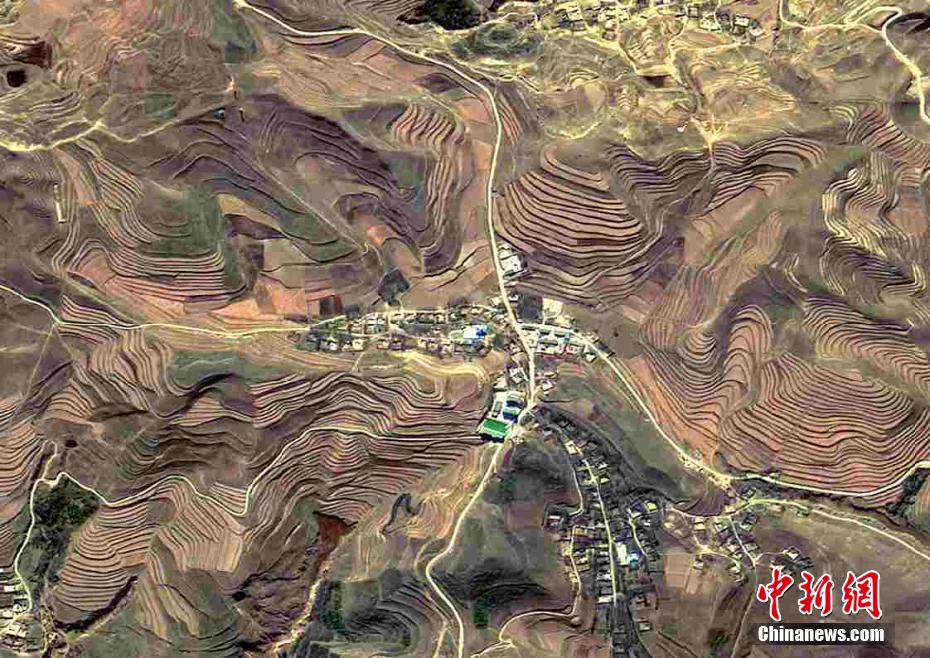 圖為青海省東部農(nóng)業(yè)區(qū)化隆縣的梯田。青海省地質(zhì)調(diào)查院 攝