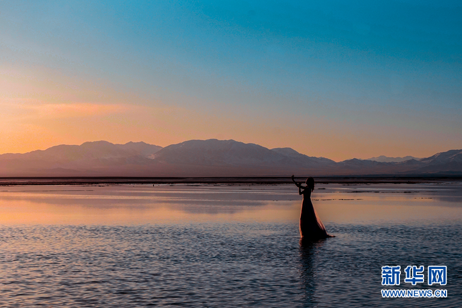 游客在茶卡鹽湖景區(qū)內(nèi)拍照。新華網(wǎng) 達洛 攝)