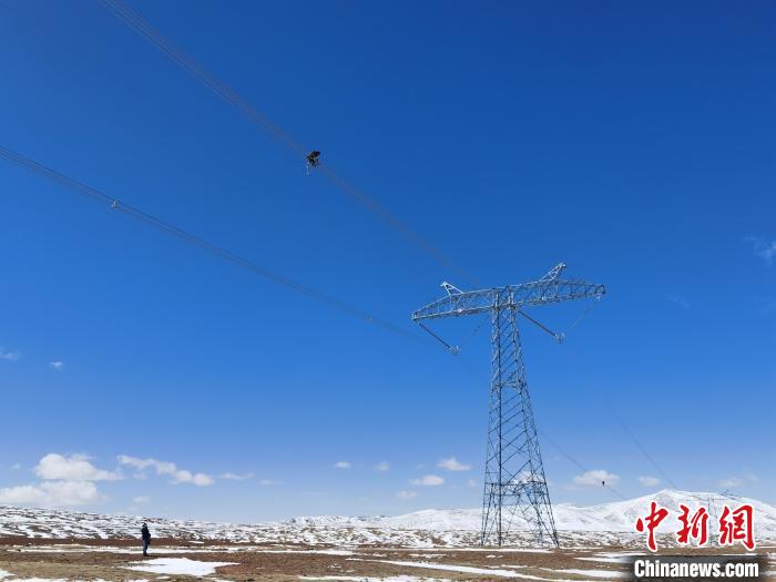 位于青海省可可西里東南部的風(fēng)火山地區(qū),被譽(yù)為“電力天路”的青藏聯(lián)網(wǎng)工程輸電線(xiàn)路跨越而過(guò),國(guó)網(wǎng)青海省電力公司檢修公司輸電運(yùn)檢人員正在對(duì)±400千伏柴拉線(xiàn)801號(hào)塔輸電線(xiàn)路進(jìn)行高空走線(xiàn)巡檢。