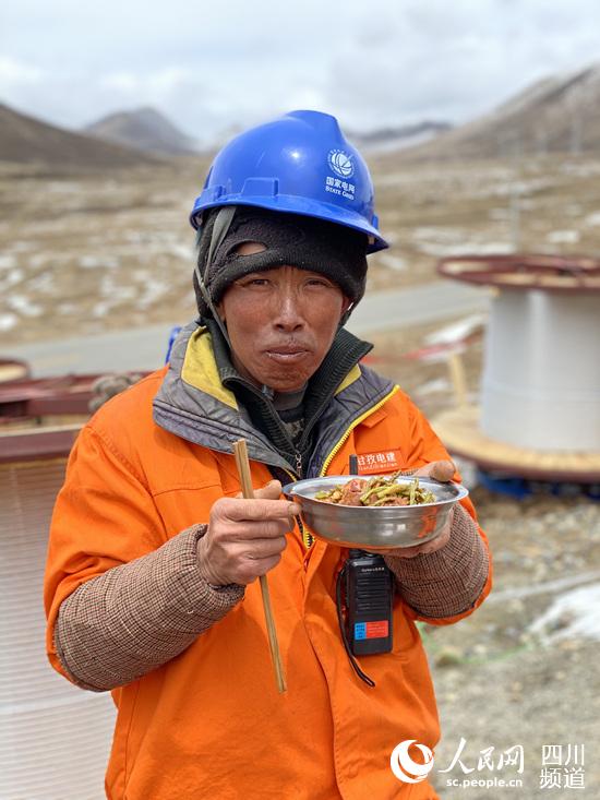 事實上,這些電力建設(shè)者都是“外地人”,剛來時也和記者一樣高原反應嚴重,表現(xiàn)就是干點活就氣喘吁吁,夜里睡不著覺?!疤稍趲づ窭锓瓉砀踩?,頭疼、沒電、手機也沒信號,聽著遠處的狼叫聲音和呼呼的風聲,那感覺確實不好受?!惫こ添椖拷?jīng)理曾繼波介紹。無法忍受惡劣的環(huán)境,施工隊不停的有人走,然后新的一批人再補充上來?!笆O碌木褪蔷鴱妼⒘?!”
