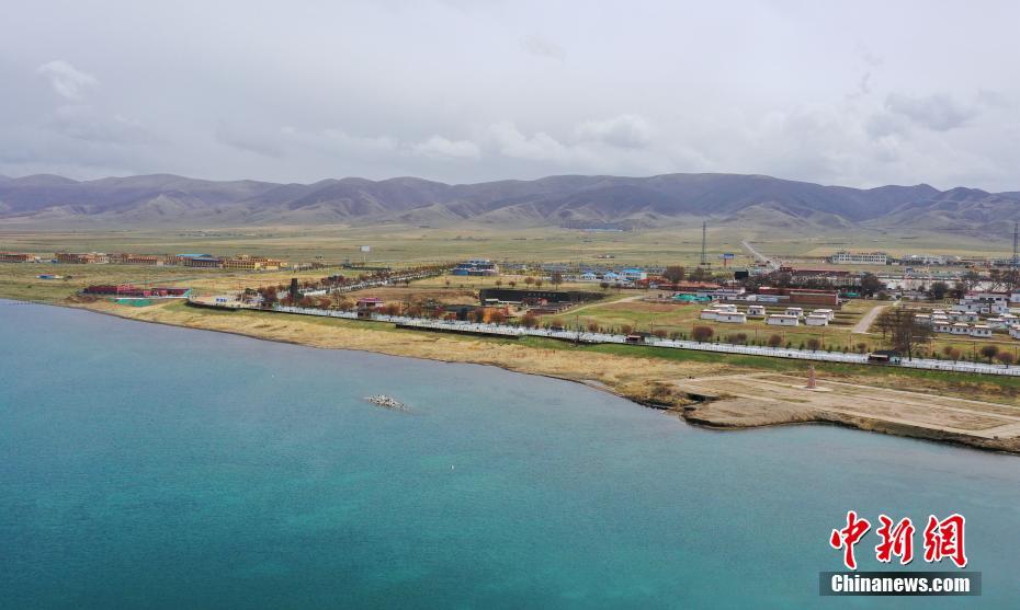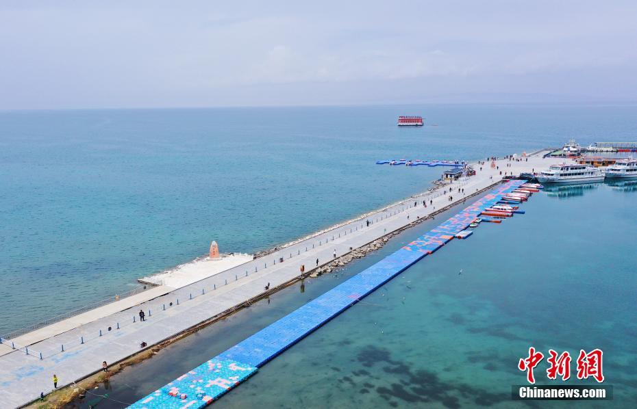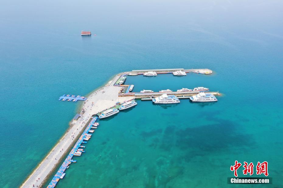 5月19日,航拍被碧綠湖水包圍的青海湖二郎劍景區(qū)碼頭。初夏時(shí)節(jié),青海省海南藏族自治州青海湖畔萬(wàn)物復(fù)蘇,碧水藍(lán)天,宛如油畫。中新社記者 馬銘言 攝