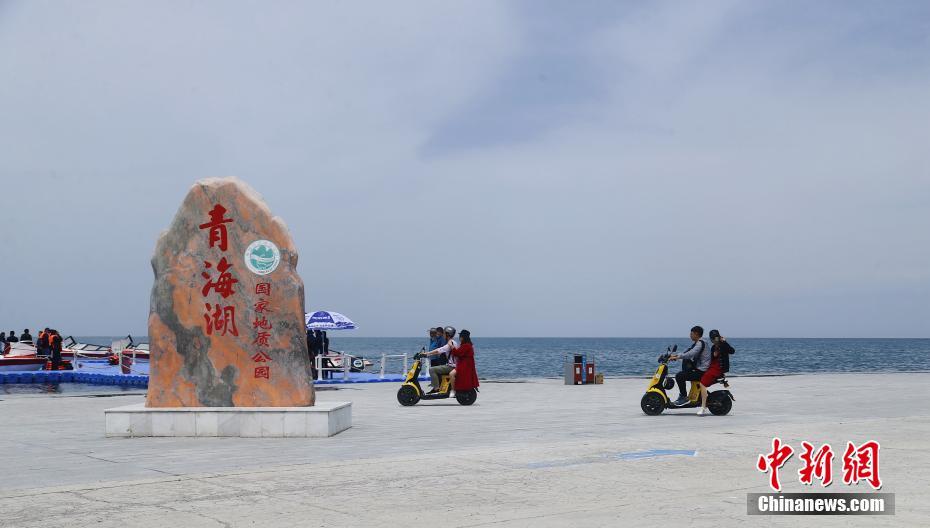 5月19日,游客騎著電動(dòng)車在青海湖二郎劍景區(qū)內(nèi)游玩。當(dāng)日是中國(guó)旅游日,游客在青海省海南藏族自治州青海湖二郎劍景區(qū)內(nèi)觀湖、與水鳥互動(dòng)、感受初夏青海湖的海天一色之美。中新社記者 馬銘言 攝
