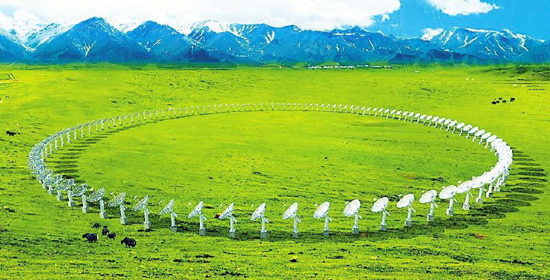 如今在建設(shè)現(xiàn)場(chǎng),能看見的只有幾棟孤零零的房屋和忙碌的工地。但在科學(xué)家腦海中,未來(lái)這里將呈現(xiàn)一幅罕見的壯麗圖景:超過(guò)300個(gè)直徑6米、形狀酷似鐵鍋的巨型天線,一個(gè)緊挨一個(gè)擺放,從而組成直徑長(zhǎng)達(dá)1公里的巨大“圓環(huán)”。