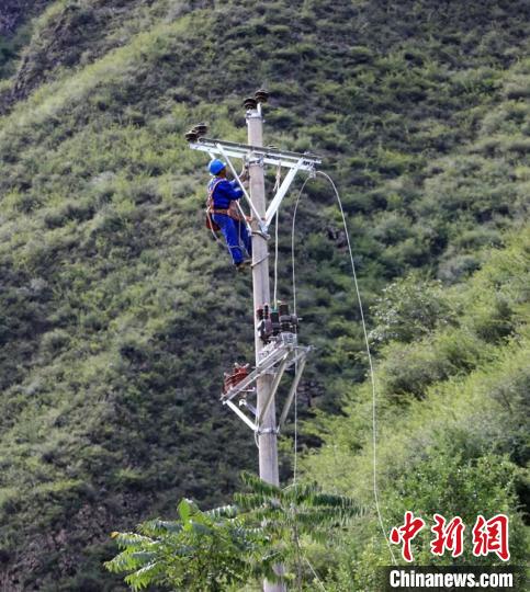 在丹巴與小金縣交界處的太平橋鄉(xiāng)黑風(fēng)頂村電力恢復(fù)施工現(xiàn)場(chǎng),35名電力搶險(xiǎn)人員正忙著架設(shè)輸電線路,該段新架設(shè)的10千伏輸電線路全長(zhǎng)1.5公里,共7跨電桿,是此次電力恢復(fù)最關(guān)鍵的工程。山洪泥石流災(zāi)害造成丹巴縣城至半扇門輸電線路嚴(yán)重?fù)p毀,短時(shí)間內(nèi)難以恢復(fù),經(jīng)過協(xié)調(diào),指揮部決定從阿壩州小金縣取得電源,以便及時(shí)解決半扇門、太平橋兩個(gè)鄉(xiāng)鎮(zhèn)老百姓的用電問題?!坝型謴?fù)堰塞湖以上26個(gè)行政村,兩個(gè)鄉(xiāng)鎮(zhèn)和四所學(xué)校,兩個(gè)衛(wèi)生院2500多戶萬(wàn)余人的生產(chǎn)生活用電?!眹?guó)網(wǎng)丹巴縣供電公司搶險(xiǎn)人員韓聲壽表示。