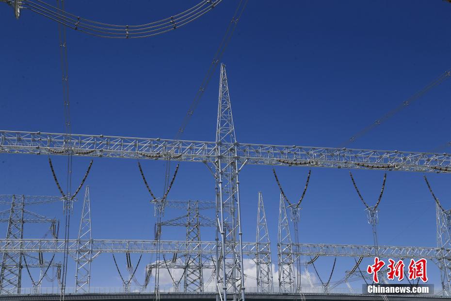 6月23日拍攝的青海省海南藏族自治州共和縣±800千伏特高壓青南換流站內(nèi)的驗收引流線。中新社記者 馬銘言 攝