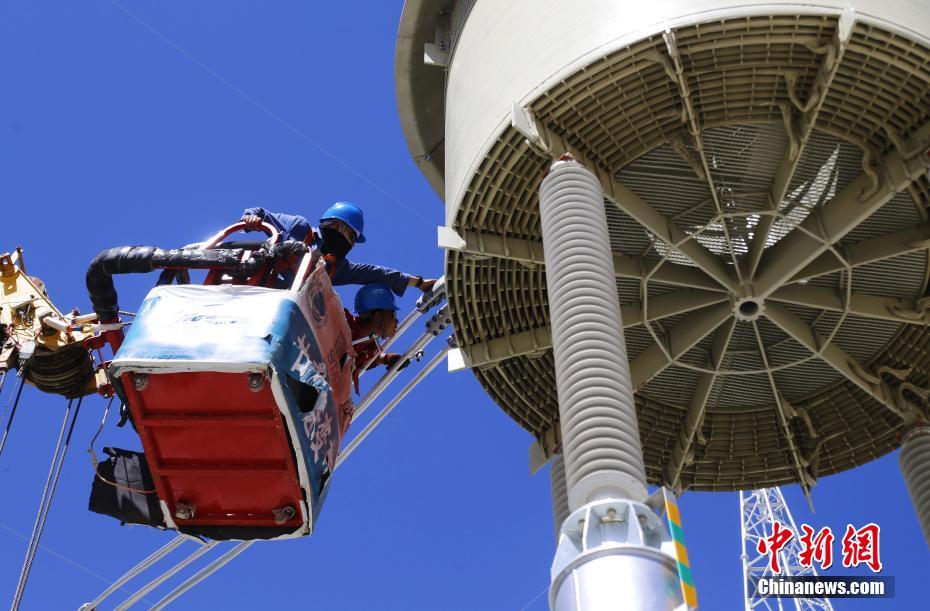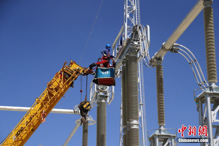 6月23日,在青海省海南藏族自治州共和縣±800千伏特高壓青南換流站,工作人員正在調(diào)試設(shè)備。中新社記者 馬銘言 攝