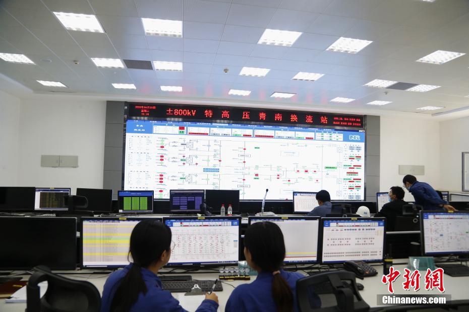 6月23日,在青海省海南藏族自治州共和縣±800千伏特高壓青南換流站,工作人員在主控室監(jiān)控及操作。中新社記者 馬銘言 攝