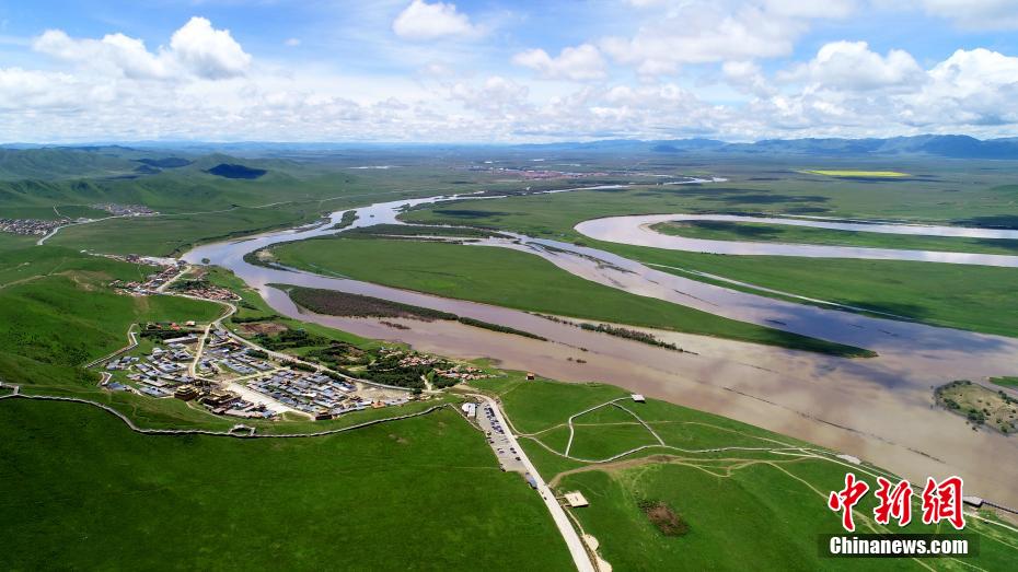 黃河九曲第一灣位于四川省阿壩藏族羌族自治州若爾蓋縣唐克鎮(zhèn),此處是四川、青海、甘肅三省交界處,黃河水在這里形成一個巨大的回灣,被稱為黃河九曲第一灣。黃河和白河將這里的草原分割成無數(shù)河州、小島,水鳥翔集,澄河蜿蜒曲折,清澈的河流水勢平緩,藍(lán)天白云,綠草繁花,帳篷炊煙,牛羊駿馬,盤旋的雄鷹,如詩如畫,氣象萬千。