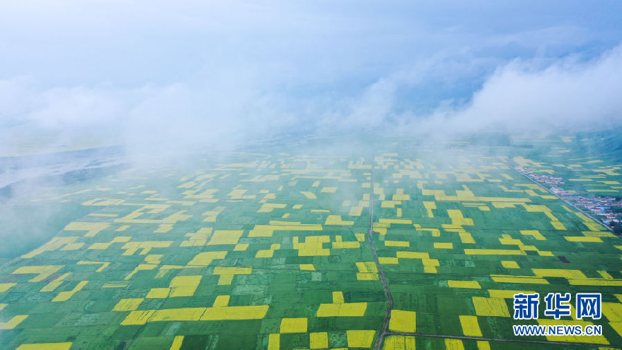 時(shí)下正值高原油菜花競(jìng)相綻放的季節(jié),在青海省海北藏族自治州門源回族自治縣,金黃色的油菜花在高原藍(lán)天和云霧映襯下形成一幅壯麗畫卷,吸引游客前來(lái)觀賞。