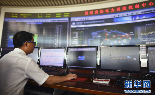 國家電網(wǎng)青海電力公司調(diào)度控制中心一名工作人員在查看發(fā)電實(shí)時(shí)數(shù)據(jù)(2019年6月12日攝)。新華社記者 張宏祥 攝