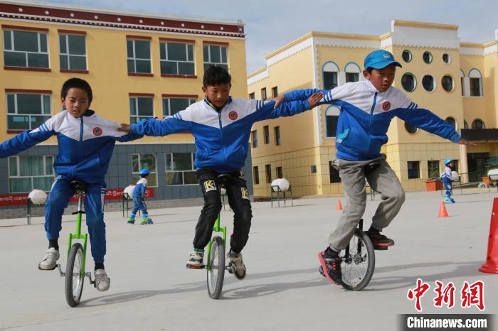 圖為鄉(xiāng)村學(xué)校少年宮的孩子們正在騎獨(dú)輪車。才讓本 攝