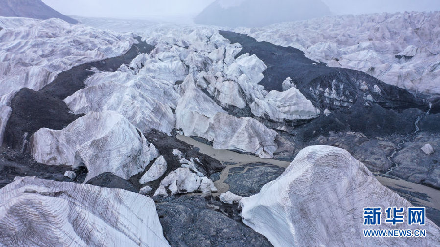 這是8月15日拍攝的崗加曲巴冰川(無(wú)人機(jī)照片)。新華社記者 吳剛 攝