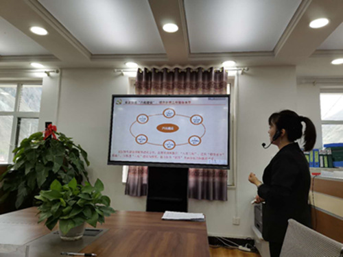 曲庫(kù)乎鄉(xiāng)黨委副書(shū)記馬曉蕓向記者介紹黨建工作開(kāi)展情況。人民網(wǎng) 吳兆飛 攝