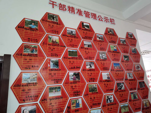 黨政辦公樓內(nèi)部,由幾十張黨員信息卡拼成的干部精準(zhǔn)管理公示欄貼滿整面墻壁。信息卡上,每名黨員的工作任務(wù)一目了然,更有民主評(píng)議分?jǐn)?shù)反映著不同黨員日常工作獲村民的滿意程度。