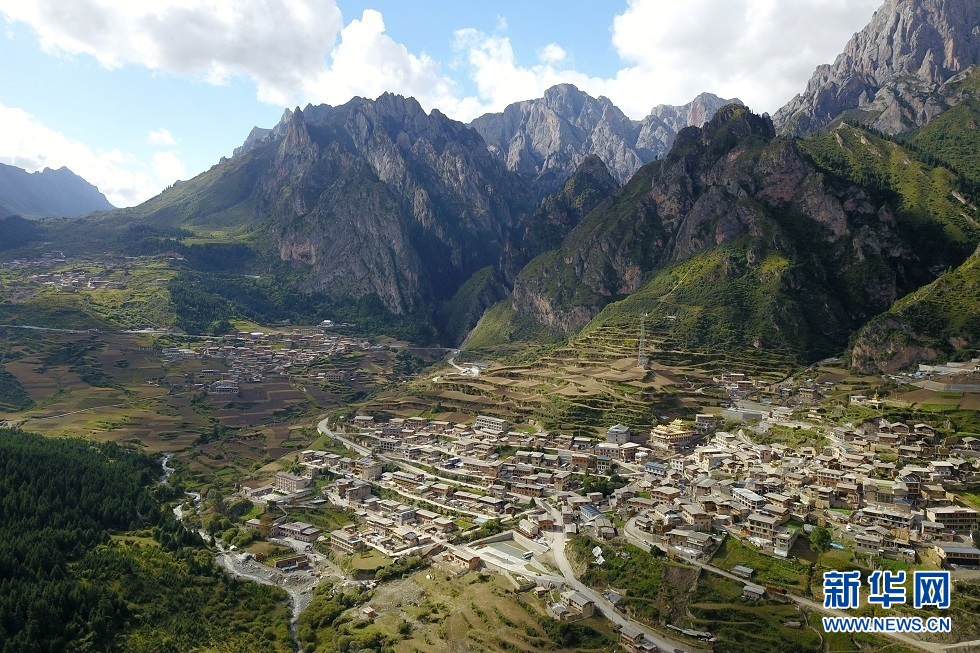 9月9日在甘肅省甘南藏族自治州迭部縣益哇鎮(zhèn)拍攝的扎尕那村(無(wú)人機(jī)照片)。新華社記者 范培珅 攝
