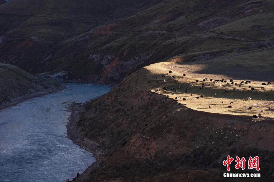 10月15日,位于青海省雜多縣扎青鄉(xiāng)的瀾滄江源頭如油畫般的風(fēng)景。圖為瀾滄江源頭的一個牧場。中新社記者 蘇丹 攝