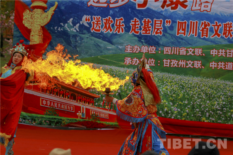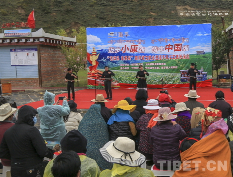 中國西藏網(wǎng)訊 10月20日,由四川省文聯(lián)、甘孜州委宣傳部主辦的“邁步小康路,鑄牢中國魂”送歡樂下基層活動在四川省甘孜藏族自治州道孚縣麻孜鄉(xiāng)溝爾普村舉行。