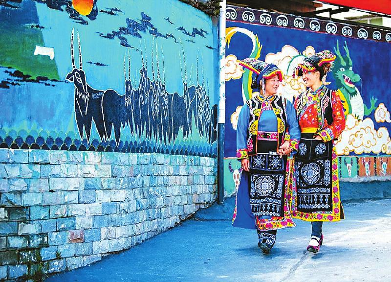 相比桃坪羌寨古老碉樓沉淀的歷史底蘊(yùn),佳山村更像一個(gè)移步換景的藝術(shù)走廊。以“紅軍長(zhǎng)征”“羌族圖騰”為主題的墻面彩繪,迄今已有3000多平方米,這些民族風(fēng)情濃郁的彩繪,吸引了不少人來(lái)此打卡,成為推動(dòng)佳山村發(fā)展鄉(xiāng)村旅游的新動(dòng)能。
