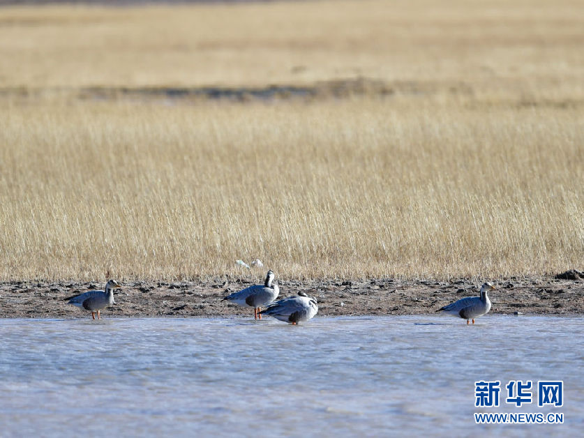 10月30日,在青海省果洛藏族自治州瑪多縣境內(nèi),斑頭雁在水中休憩。新華社記者 張龍 攝