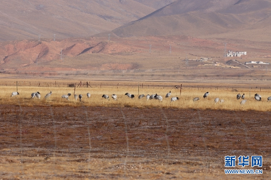 集群黑頸鶴和灰鶴。新華網發(fā)